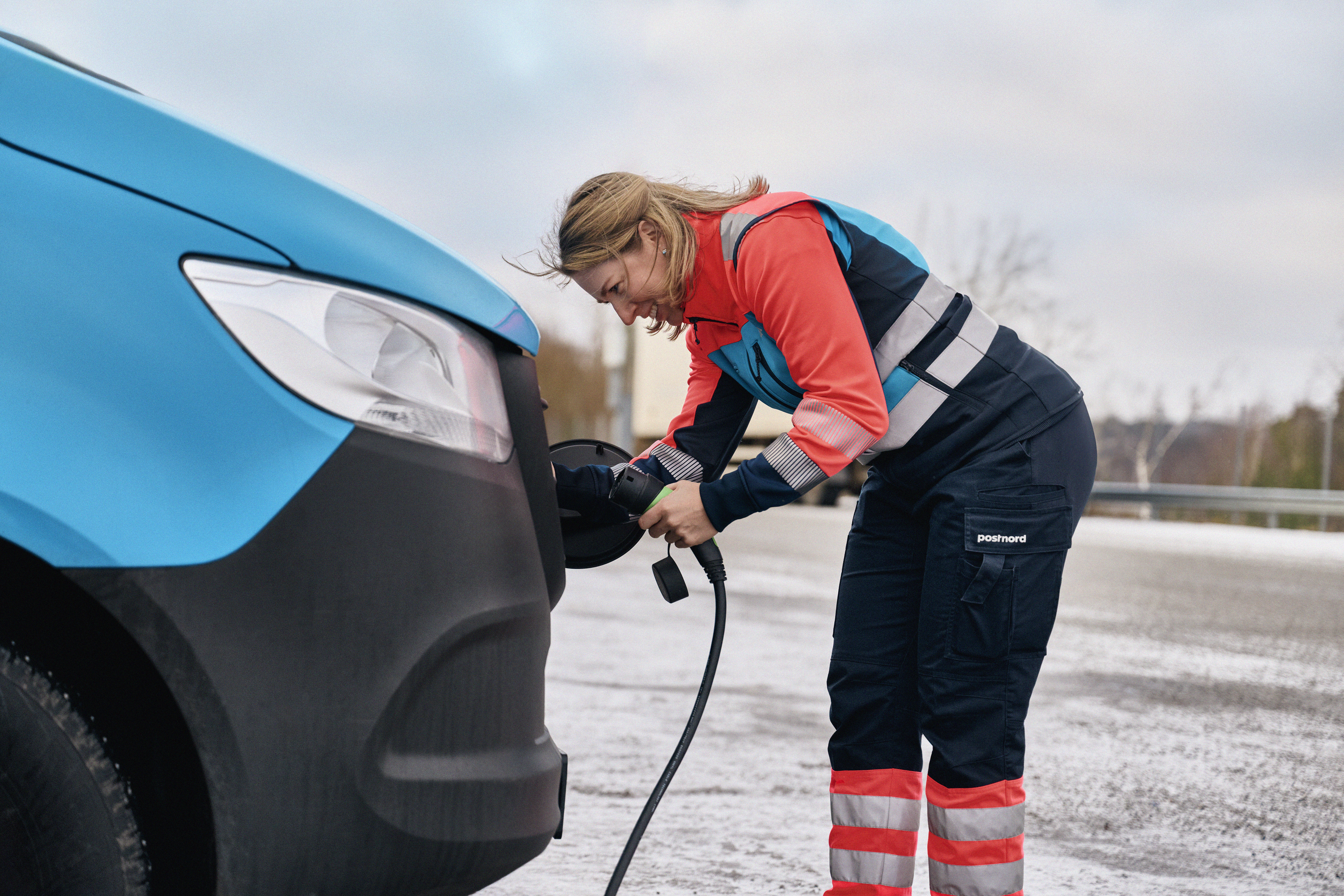 Aiomme ajaa 80 % lähetysten viimeisen kilometrin kuljetuksista päästöttömästi vuoteen 2030 mennessä. Tavoite edellyttää, että lisäämme sähköautojen osuutta kalustossamme merkittävästi. Käytännössä se tarkoittaa sähköautoja, jotka käyvät uusiutuvalla energialla, kuten vesi-, aurinko- tai tuulivoimalla.